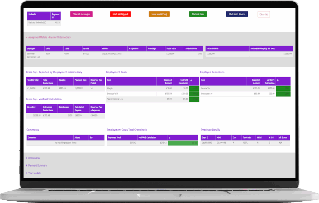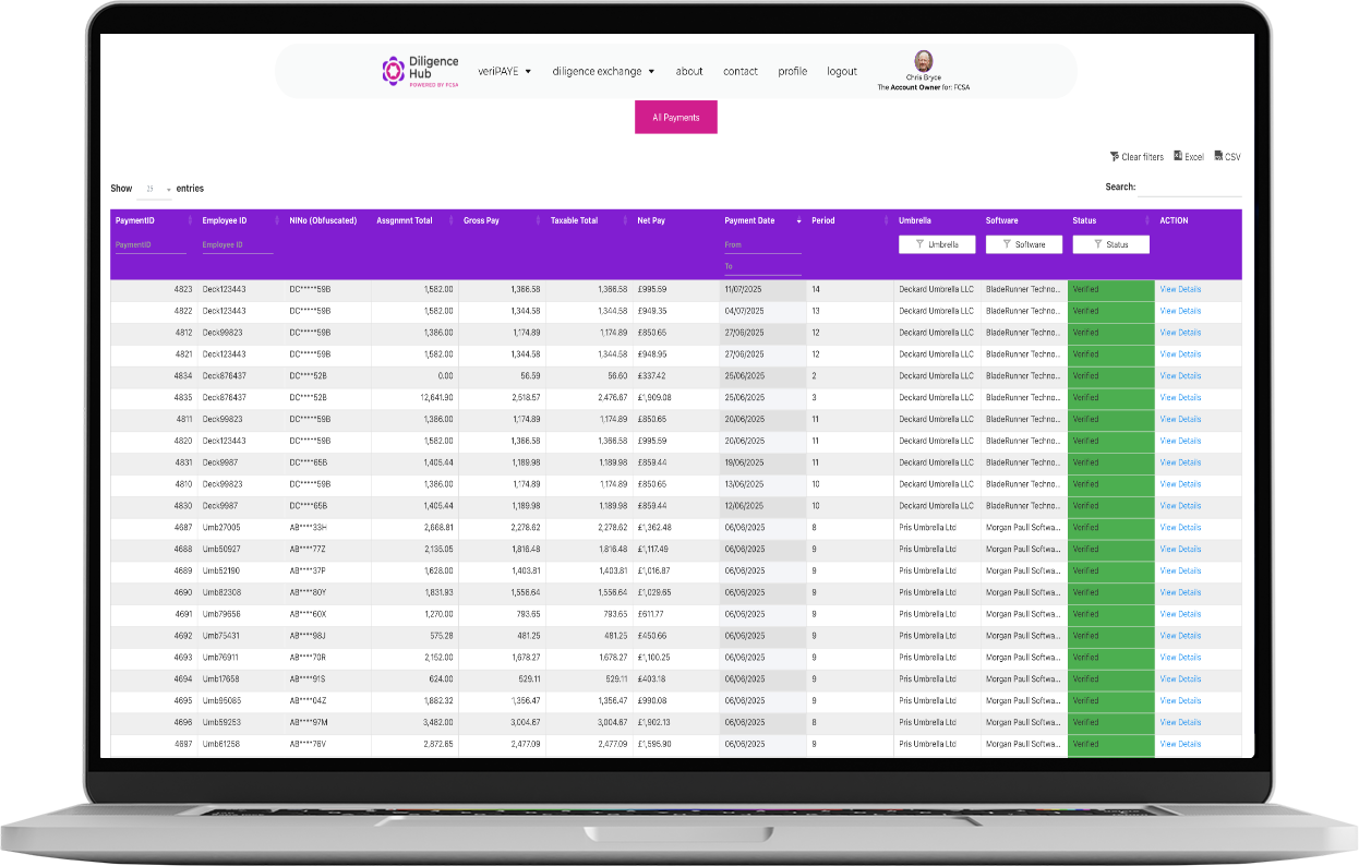 All users benefit from a single, independent platform that provides consistent, transparent compliance data. Recruiters can validate payslips instantly, umbrellas can evidence compliance with confidence, and end-clients gain visibility over their supply chains.